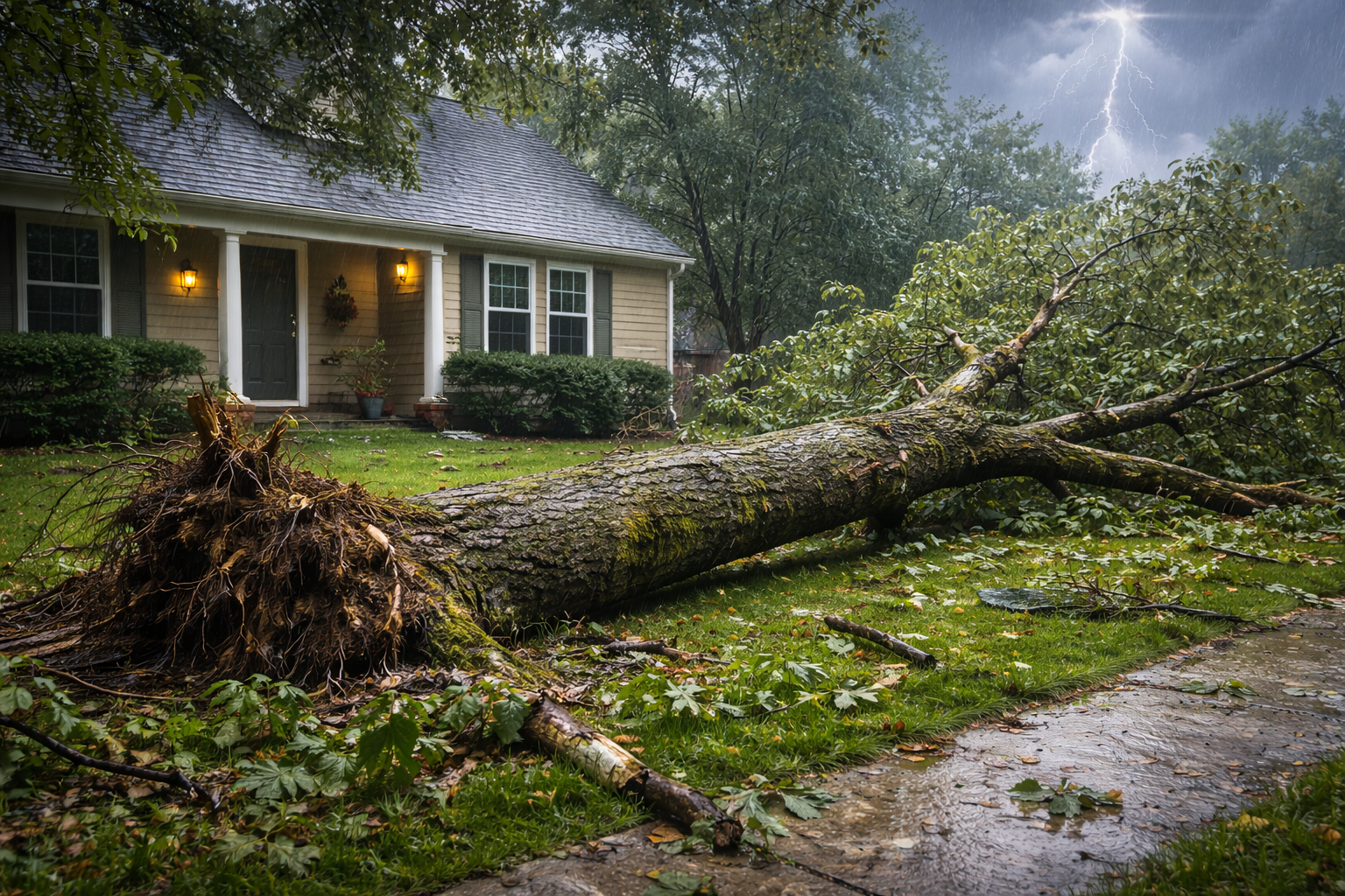 If a tree has already fallen—especially onto your home, car, or yard—it’s critical to act quickly.